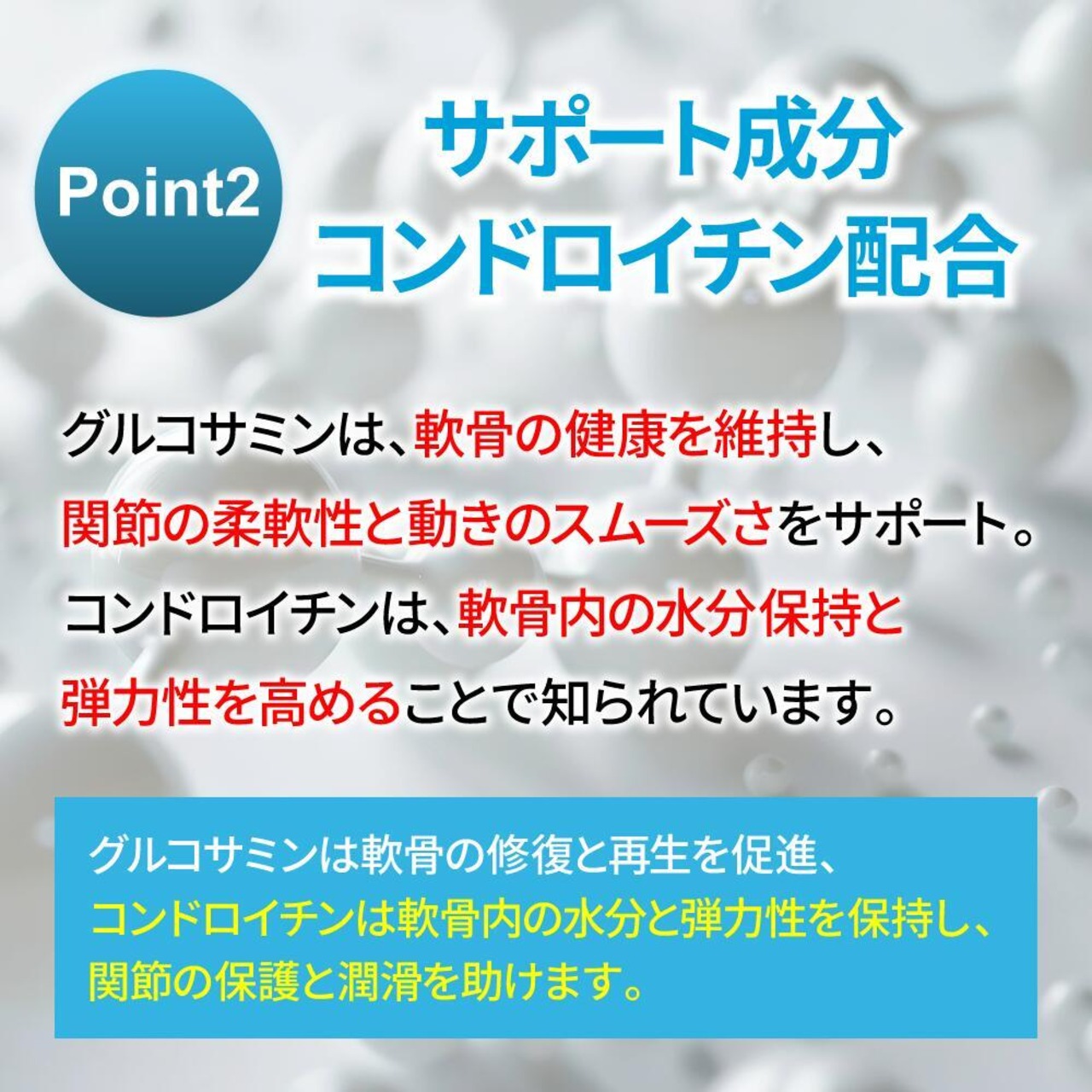 届出表示:本品にはグルコサミン塩酸塩が含まれます。グルコサミン塩酸塩は、膝の可動域の改善、膝の違和感を軽減することが報告されています。