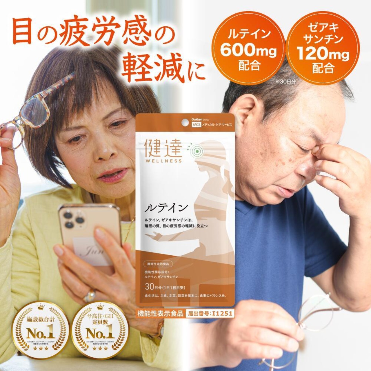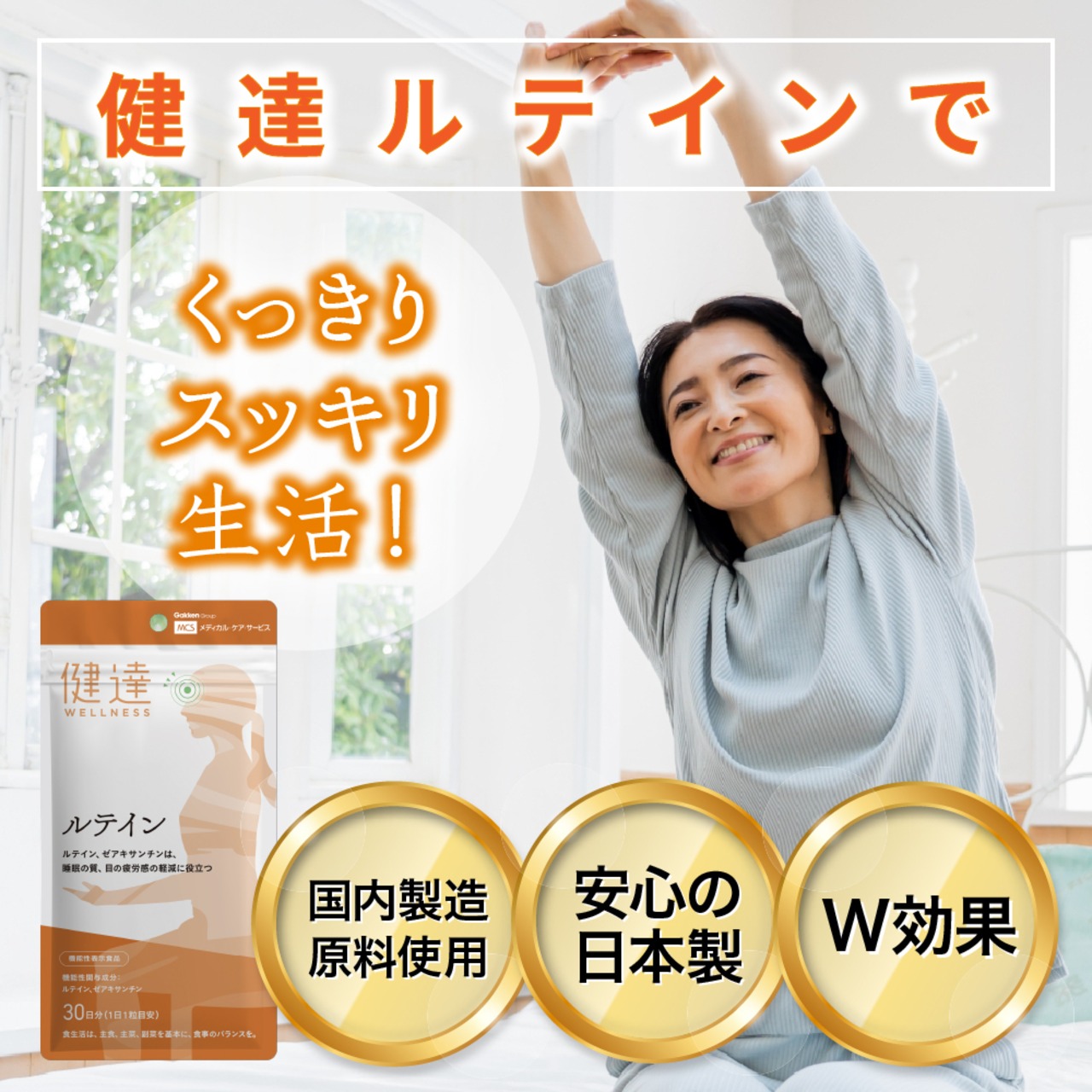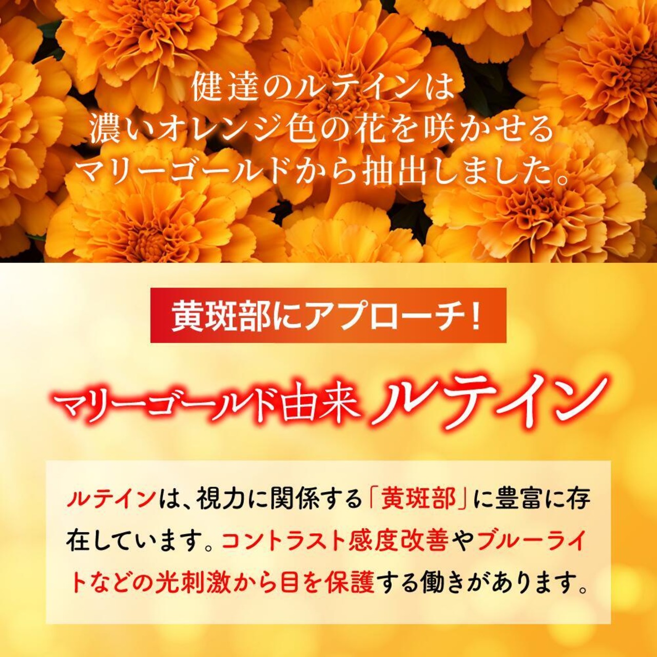 届出表示:本品にはルテイン、ゼアキサンチンが含まれます。ルテイン、ゼアキサンチンは、眼の黄斑色素量を増加、維持する働きがあり、コントラスト感度(はっきりした輪郭をもたず、濃淡の差が少ない模様を識別する視機能)やグレア回復(まぶしさから回復する視機能)の改善、睡眠の質、眼の疲労感の軽減に役立つ機能があることが報告されています。